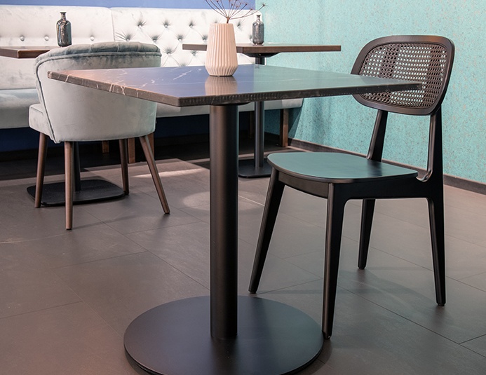 Der Stuhl RALINA bringt den eleganten Charme der 60er-Jahre in moderne Räume. Mit der markanten A-Form der hinteren Stuhlbeine und einem handgefertigten offenen Wiener Geflecht in der Rückenlehne vereint er Stabilität mit optischer Leichtigkeit. RALINA ist in edlem schwarzen Buchenholz oder natürlicher Eiche erhältlich, wahlweise mit Holz- oder Polstersitz. Das hochwertige Kunstleder-Sitzpolster, ausgestattet mit erstklassigem Schaum, lässt sich in vielen Farb- und Stoffvarianten der Stoffkollektion gestalten. Harmoniert perfekt mit unserem Bestseller RALERA – für stilvolle Kombinationen in Ihrem Interieur.Artikelnummer